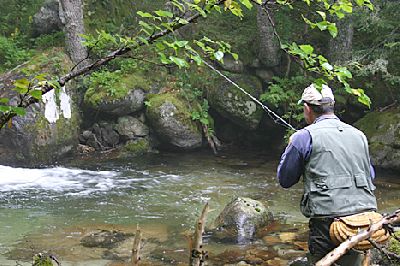 – « Si ça mord ? répond le pécheur en rigolant. Ici, c’est un coin INCROYABLE! On dirait que les truites viennent ici exprès pour se faire attraper. Hier, ici même, j’en ai pris dix en moins d’une heure !!! »